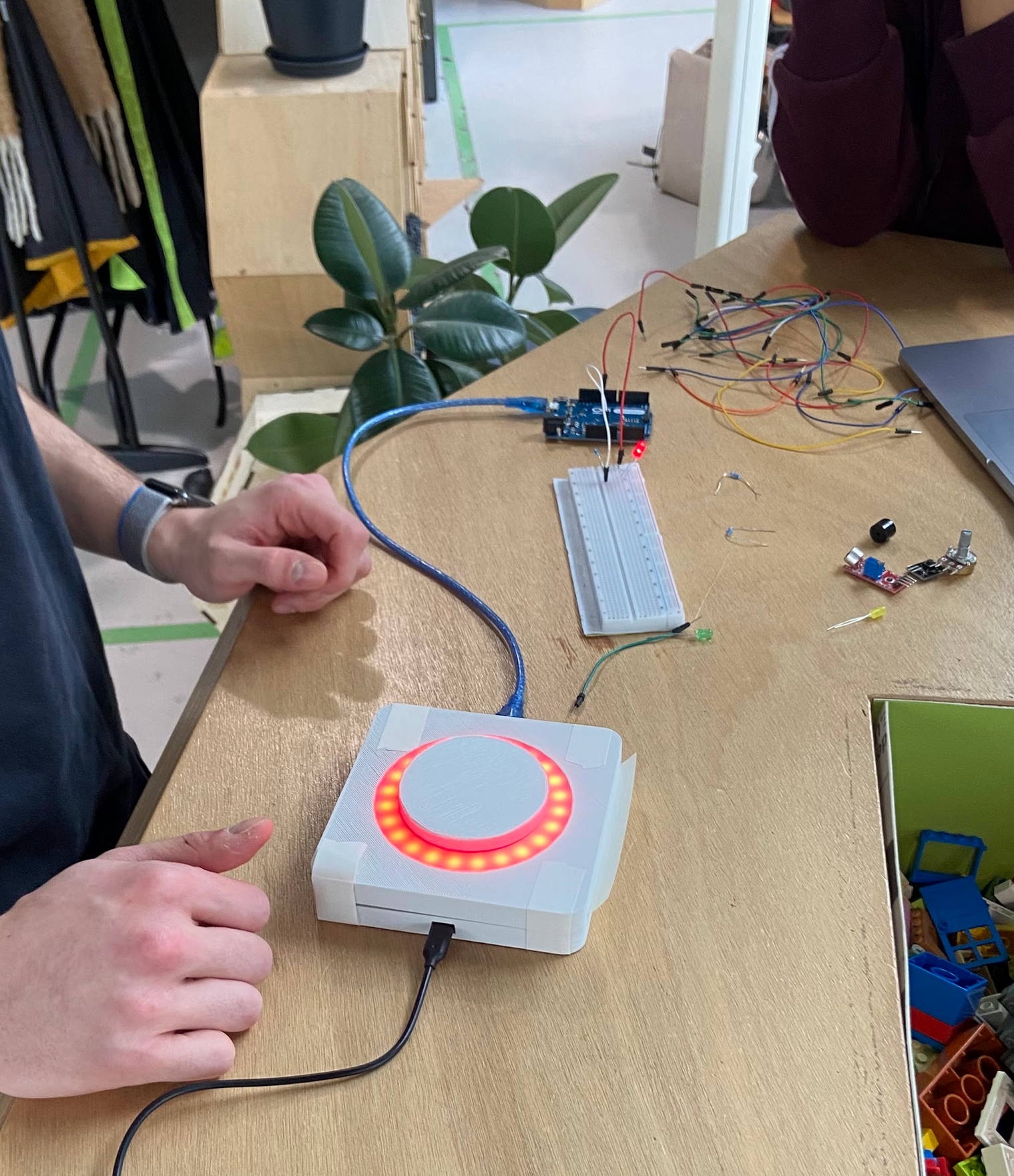 We developed an AI-powered tinkering toolkit designed for designers without coding experience to quickly create Arduino prototypes. By simply describing their desired setup and behavior to the AI device; such as specifying which pins a button and LED are connected to and how they should interact. The system automatically generates and uploads the corresponding Arduino code. This toolkit lowers the barrier for designers to experiment with interactive hardware, enabling faster prototyping through natural language input.